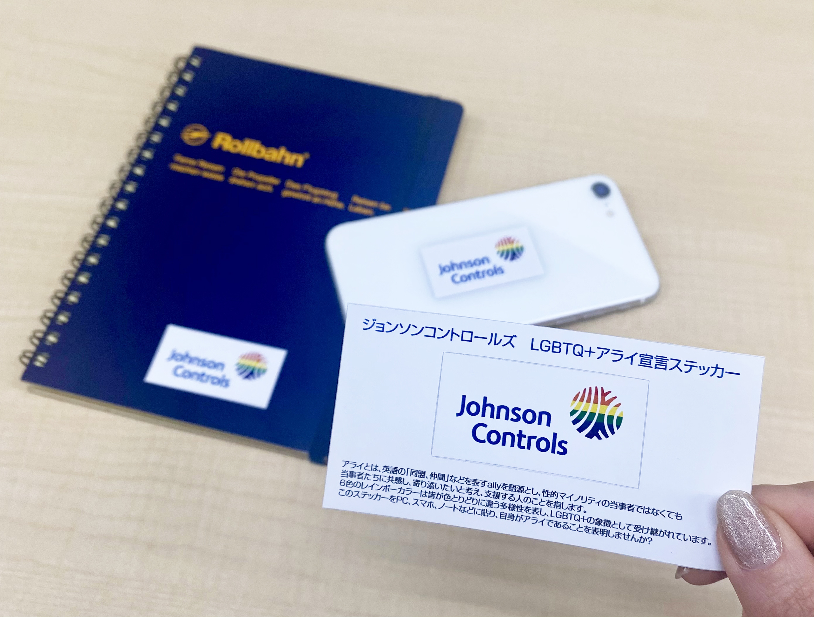 ジョンソンコントロールズは「性の多様性 ハンドブック」とともに「アライ ステッカー」も従業員に配布しています。