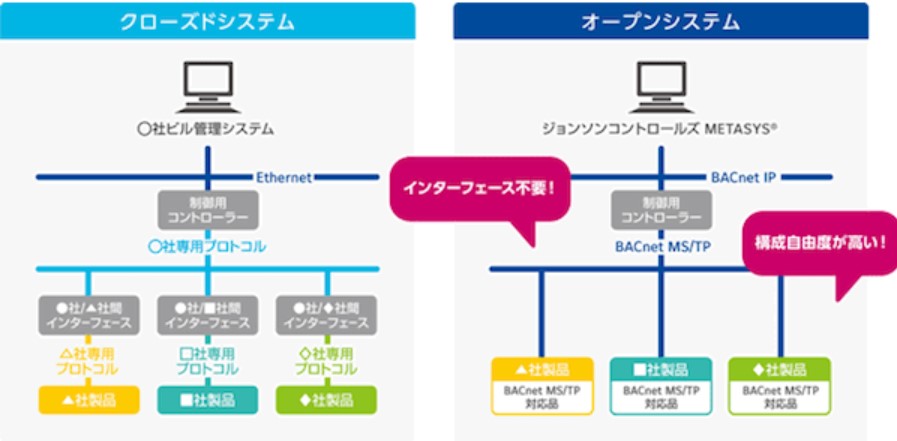 そして、オープンプロトコルを使用したビル管理システムを「オープンシステム」と呼んでいるよ。